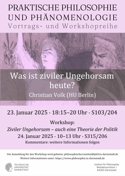 - 23./24. Januar 2025: Christian Volk (HU Berlin): „Ziviler Ungehorsam“